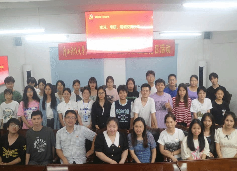为让预实习同学们做好实习的准备、规划好学业方向,适应实习生活,缩短医学生到临床医生的角色转变时间,广西科技大学第一临床医学院教工党支部、第一临床医学院学生会学习部于6月9日晚在第一临床医学院2楼会议室举办了“专业引领”系列第一次学术沙龙活动。沙龙活动由庞莉老师和宁艳艳同学共同主持,教工党支部教师代表陈晓敏、聂友源、覃灏、陆莉静及19级临床本科、21级临床专科学生共40余人参与此次活动。