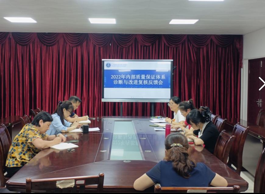 6月12日下午,附属卫校组织了诊改工作五大层面负责人召开2022年校内诊改复核工作反馈会。校长冯学珍、副书记韦锦绣、副校长黄富献参加了会议。