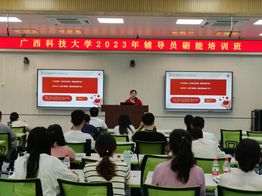 为深入学习贯彻习近平新时代中国特色社会主义思想,全面贯彻落实党的二十大精神,深化落实《广西科技大学辅导员队伍建设三年行动计划实施方案(2022—2024年)》,教育引导我校辅导员自觉用党的创新理论武装头脑、指导实践、推动工作,全方位提升我校辅导员素质能力,7月17日至23日,学校举行2023年辅导员砺能培训班,全体学工干部120余人参加培训。