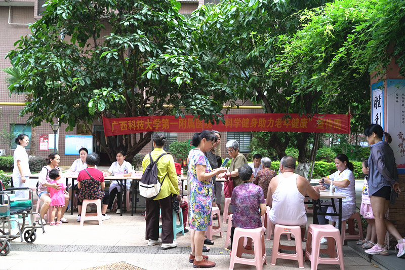 为宣传普及老年健康政策和科学知识,切实提高老年人健康素养和健康水平,7月26日早上,广西科技大学第一附属医院到胜利开展“科学健身助力老年健康”宣传周义诊活动。
