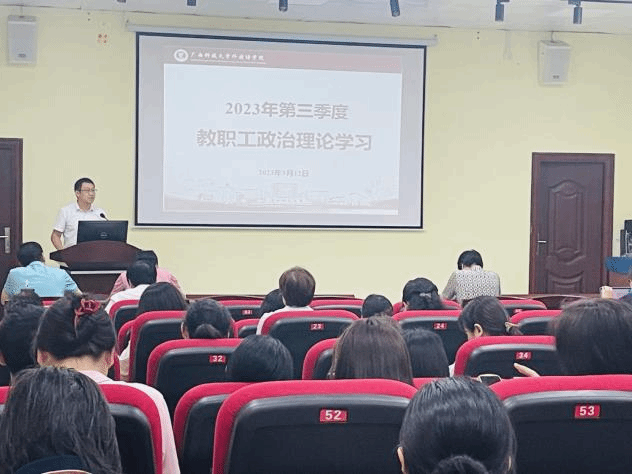 9月12日下午,外国语学院在文昌校区基础106教室召开全体教职工政治理论学习会,传达学习习近平总书记教师节重要指示精神。会议由学院党委书记主持。