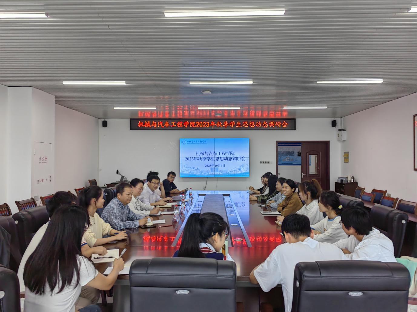 为充分了解学生思想状况以及关于学习方面存在的问题,10月9日,机械与汽车工程学院在柳东校区学院会议室召开秋季学期第一期“机汽”大家谈之学生思想动态调研会。机械与汽车工程学院党委书记何敏,党委副书记、院长孙有平,副院长杨年炯,副院长张成涛,以及本科生、硕士研究生代表参加了会议。会议由学院党委书记何敏主持。