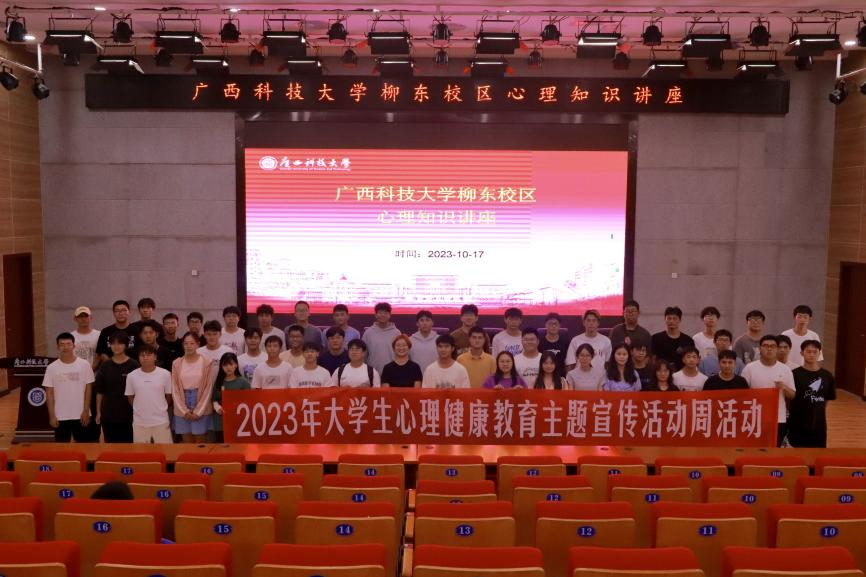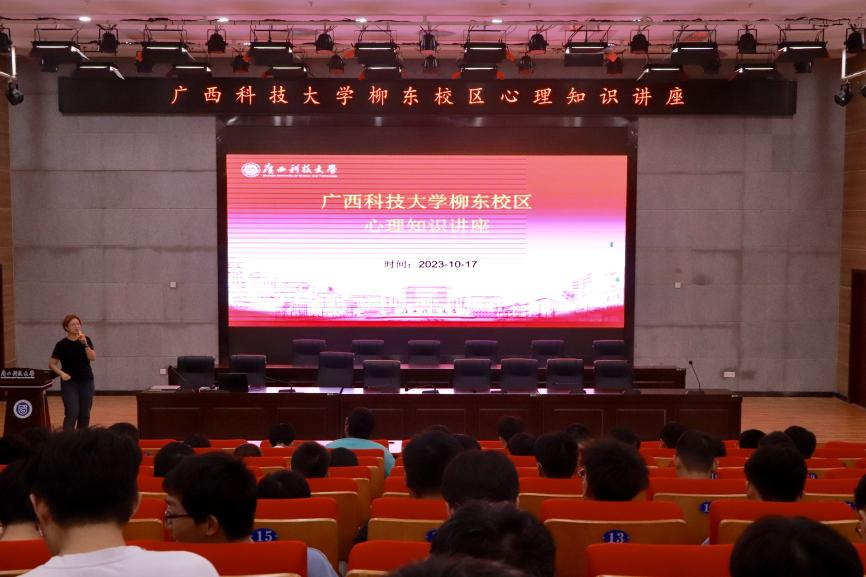 2023年10月10日是第三十二个世界精神卫生日,由大学生心理健康教育中心主办,自动化学院、柳州市社会治安综合治理中心心理服务基地、广西脑科医院承办的心理知识讲座在柳东校区T1-303多功能报告厅顺利举办。此次讲座由广西脑科医院主治医师黄海琪主讲《我和“TA”和世界》,柳东校区两个学院300余名学生参与,自动化学院2023级本科生辅导员周杰主持。