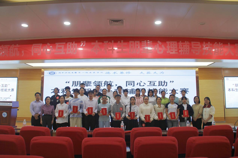 10月22日上午,第一临床医学院在学院学术报告厅举办第二届“朋辈领航,同心互助”本科生朋辈心理辅导技能大赛。学院党委副书记何曲波出席活动,学校心理健康教育中心专任教师周洁、潘珏年、黄苏丽、赖春燕、黄婷婷,心理委员和学生观众参与活动。