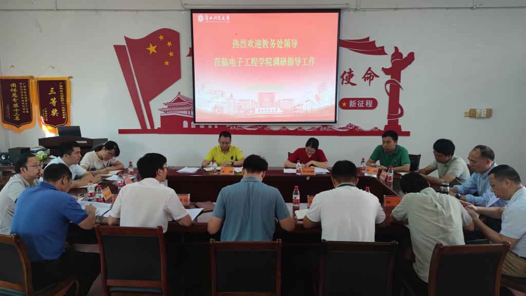 10月26日上午,教务处处长李健到电子工程学院开展调研指导工作,教务处综合科科长莫济榕随行调研。学院全体党政班子成员、各系部主任、副主任及部分学院骨干教师参加调研座谈会。会议由学院党委书记朱广生主持。