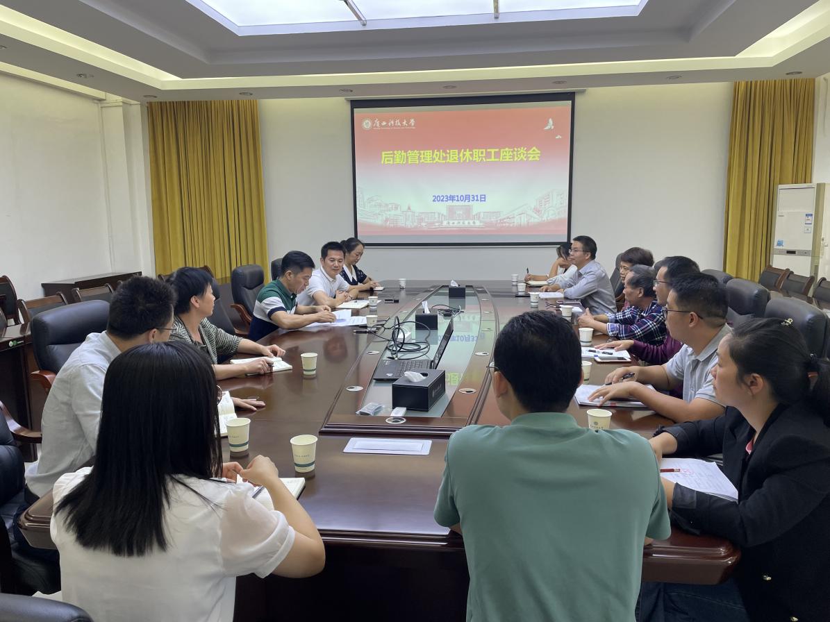 10月31日,后勤管理处在文昌校区办公楼6-2会议室举行退休职工荣退仪式,欢送刘清枝和曾宪雄光荣退休。后勤处全体领导班子成员、工会委员及相关科室同志参加。