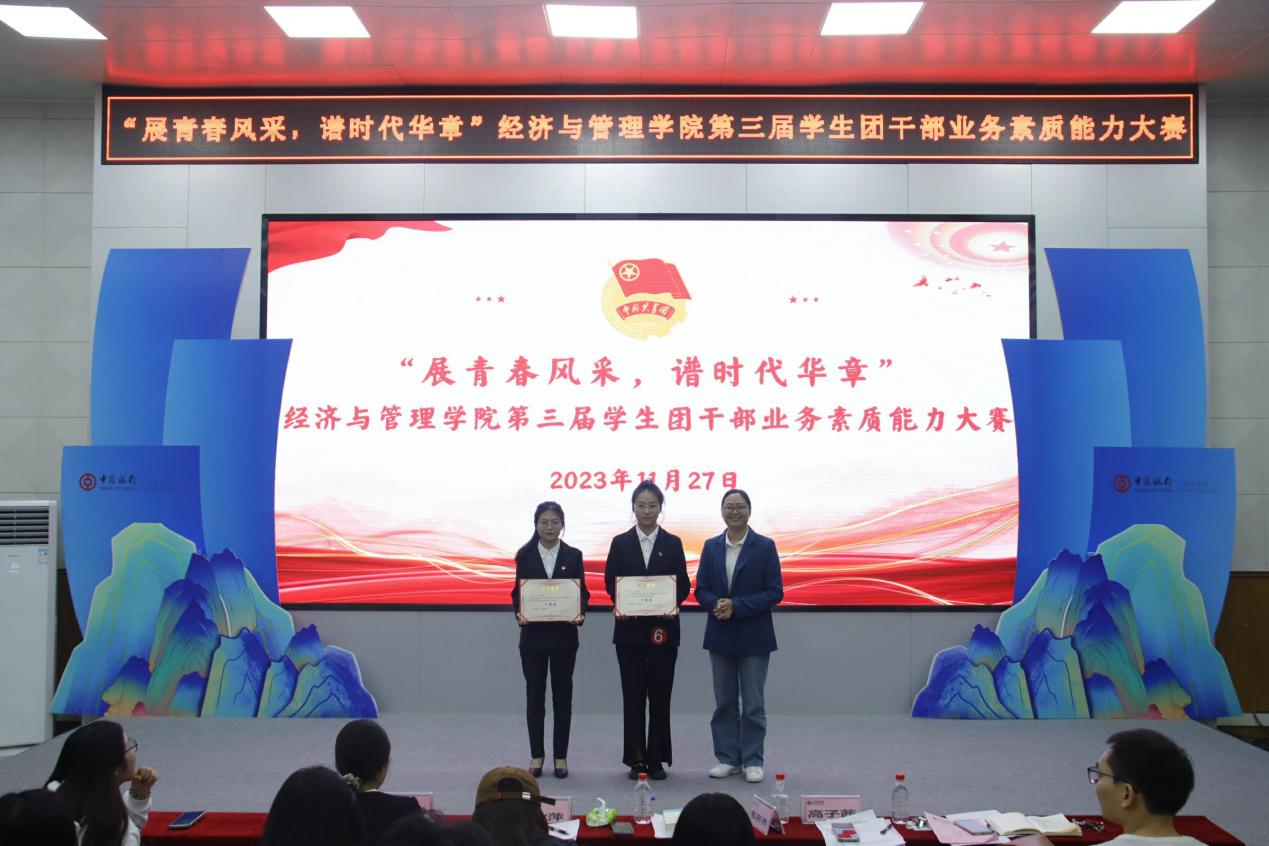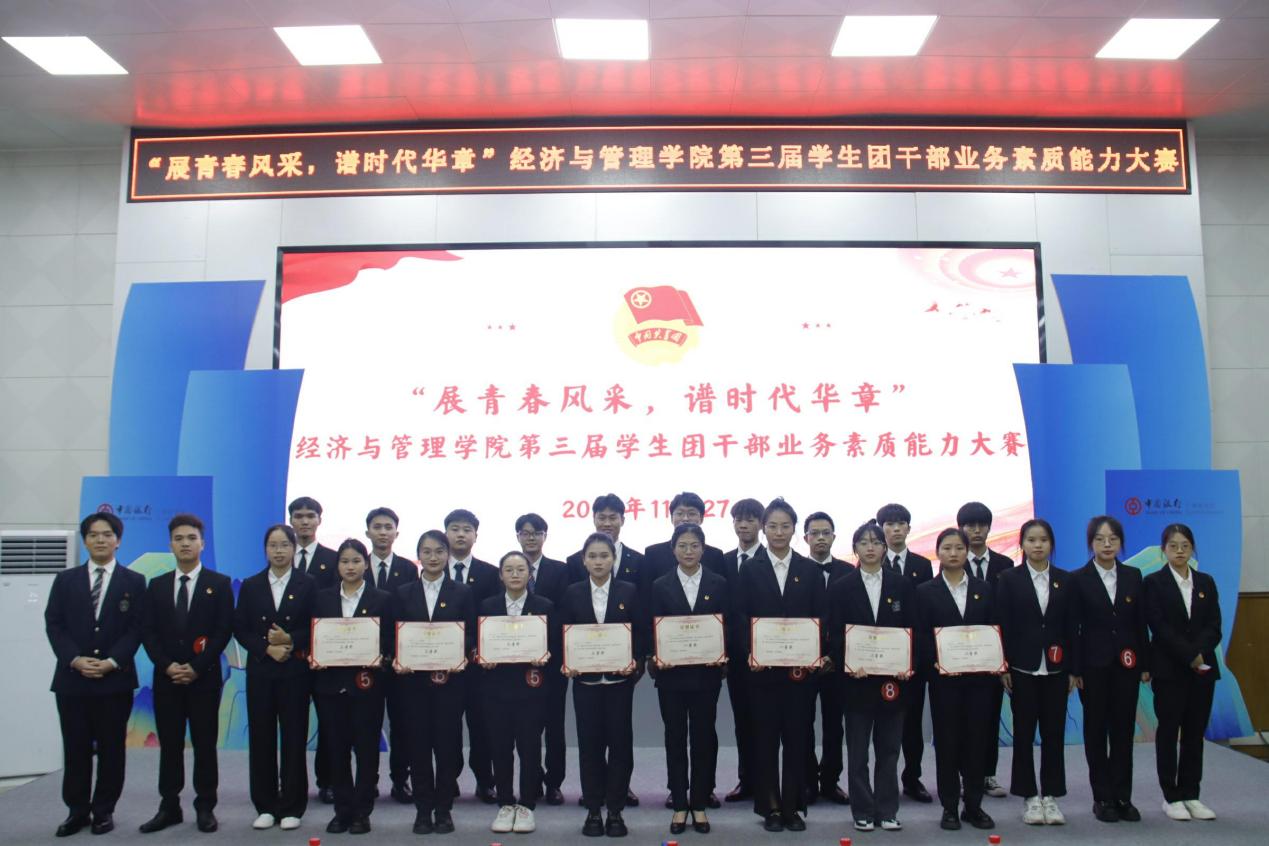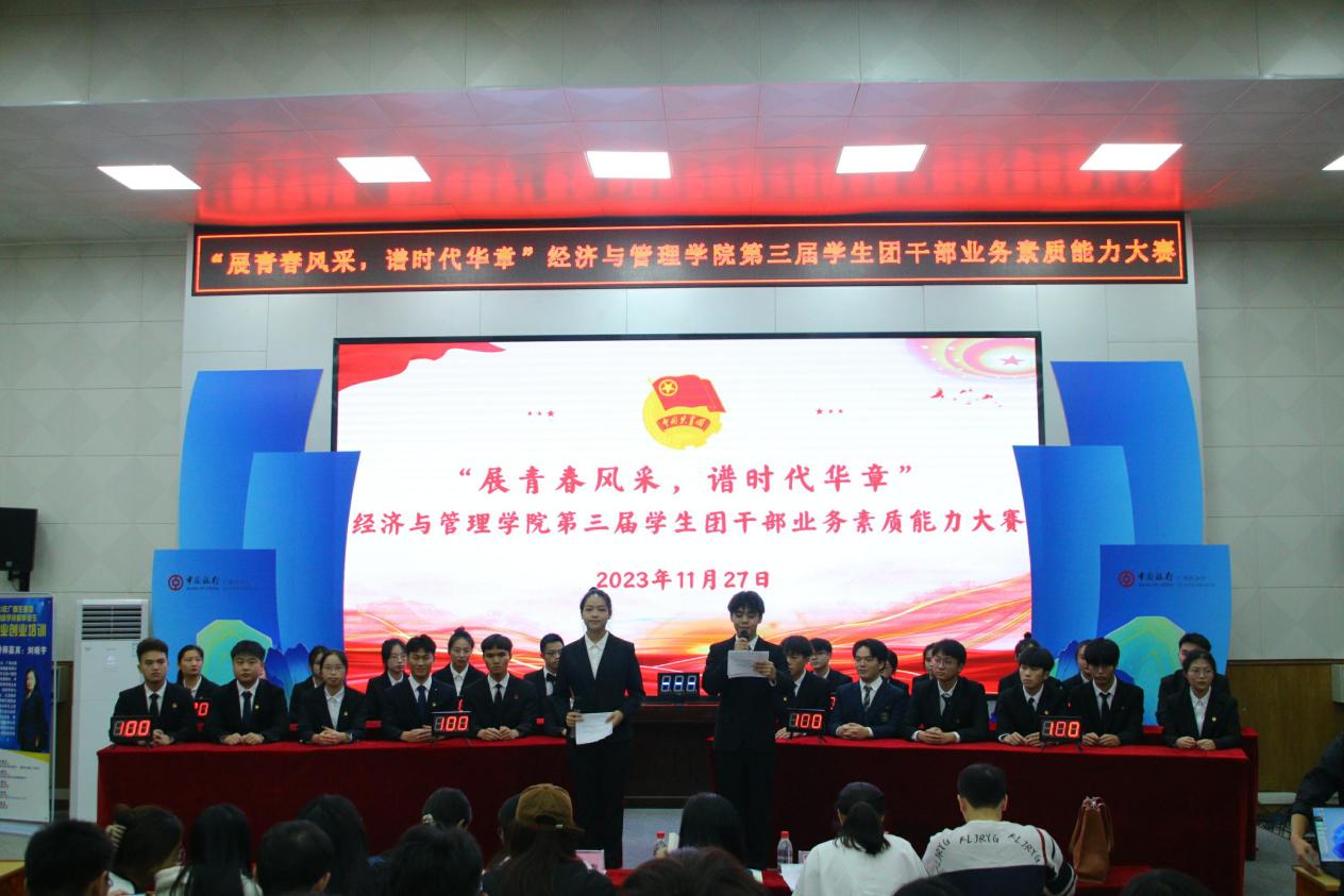 为进一步加强基层团组织建设,提升学生团干部的思想理论水平和业务素质能力,11月27日,经济与管理学院在文昌校区图书馆报告厅举办了主题为“展青春风采,谱时代华章”的第三届学生团干部业务素质能力大赛决赛。学院党委副书记、纪委书记韦齐齐,学院学工办主任、团委书记彭秋萍,学院团委副书记高子茜,学院2020级辅导员廖万忠,2023级辅导员李睿参加活动并担任评委。