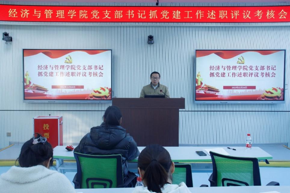 12月20日下午,经济与管理学院在文昌校区4D403召开党支部书记抓党建工作述职评议考核会。学院党委委员、专职组织员、党支部书记以及师生党员代表参加会议。学院党委书记莫勤德主持会议。