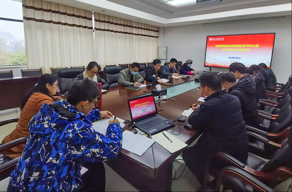 1月5日上午,后勤管理处党总支在文昌校区办公楼4—1会议室召开理论学习中心组2024年第1次集中学习会,深入学习贯彻习近平总书记对广西重大方略要求。后勤管理处党总支理论学习中心组全体成员参加会议,会议由党总支书记秦培仁主持。