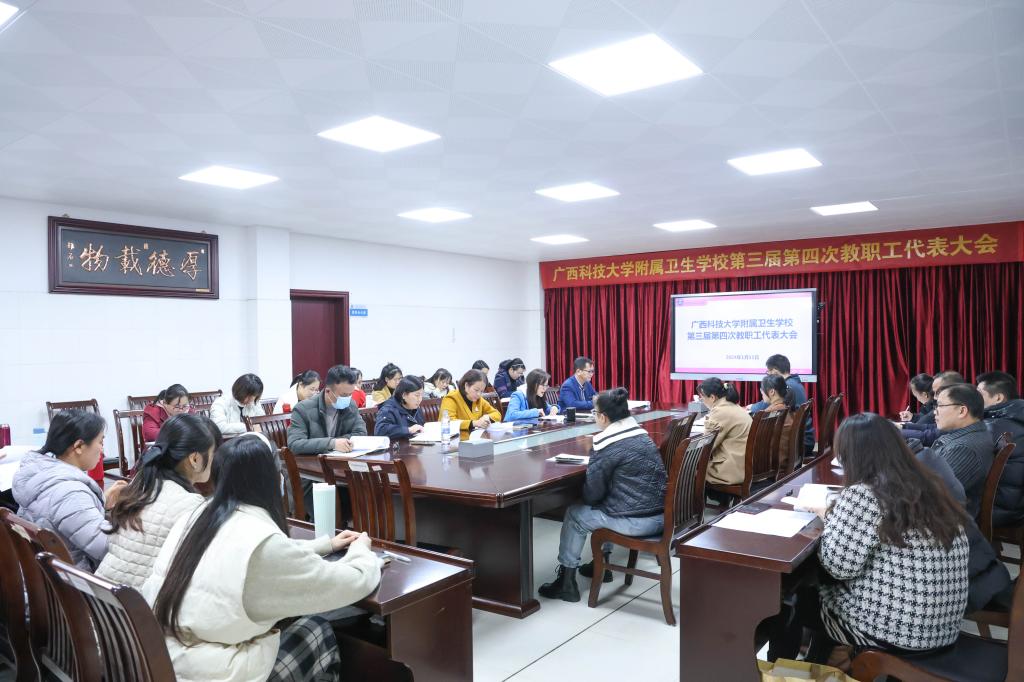 1月11日下午,附属卫校在行政办公楼会议室召开第三届第四次教职工代表大会,审议《附属卫生学校2023年度校长工作报告》和《附属卫生学校2023年奖励性绩效C分配方案》。教职工代表和列席人员参加会议。会议由工会主席、副校长黄富献主持。
