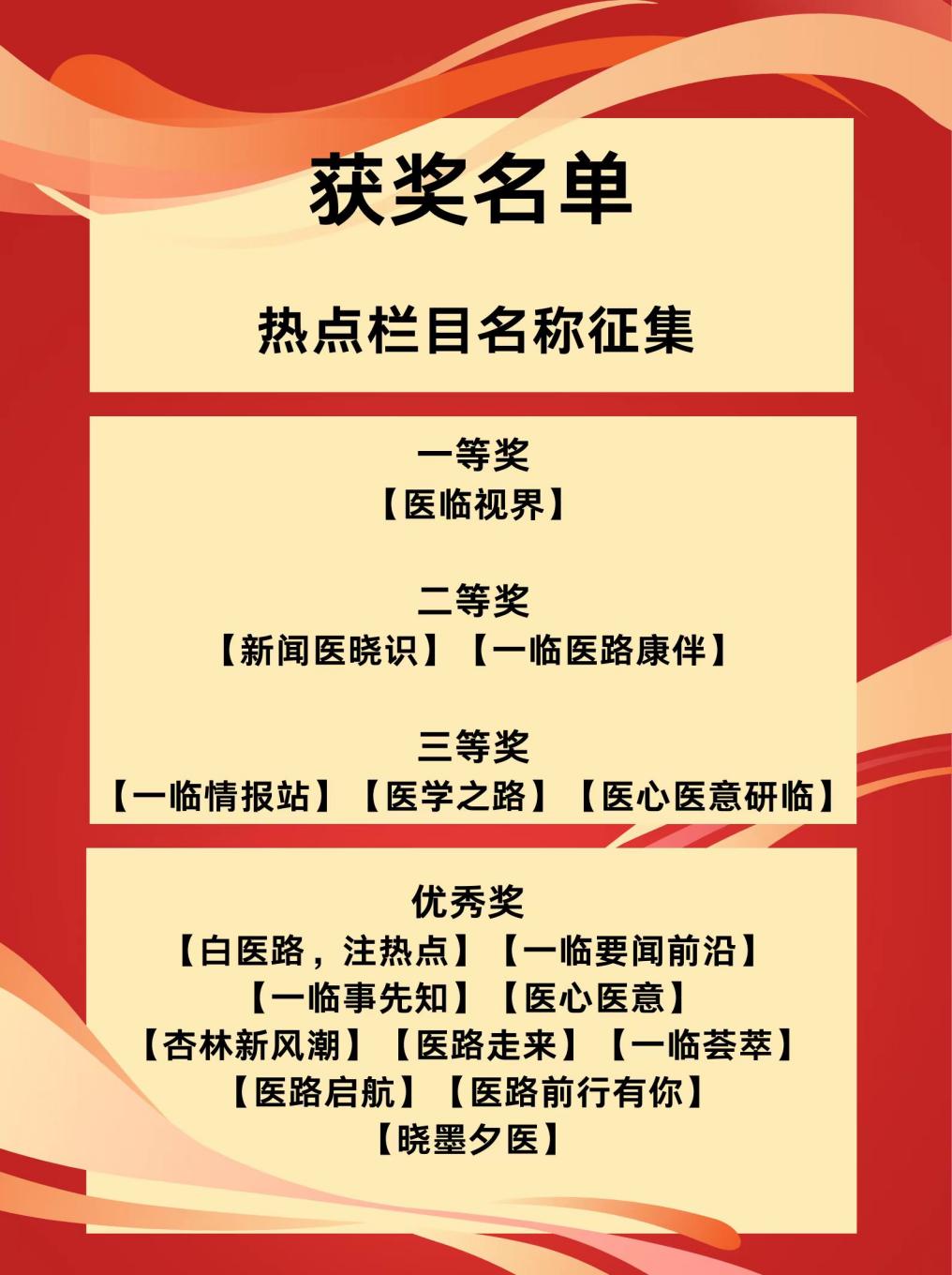 1月18日,历时1个多月的第一附属医院(第一临床医学院)官微热点栏目名字征集活动获奖名单揭晓,临床233班李秋洁同学投稿的“医临视界”以贴近主题、好听易记获得了一等奖。