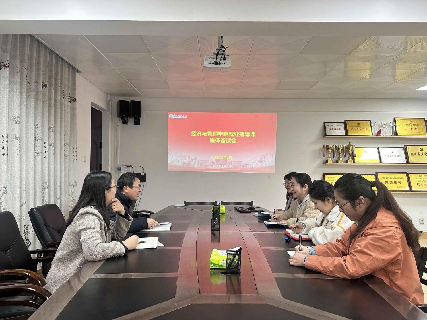 为了更好地完成2025届本科毕业生就业指导课的授课计划和任务,提高课程教学质量,推进课程思政建设,为毕业生将来就业打下良好基础,3月7日,学院组织全体任课老师在文昌校区第四教学楼4B409召开集体备课会,会议由学院党委副书记韦齐齐主持。
