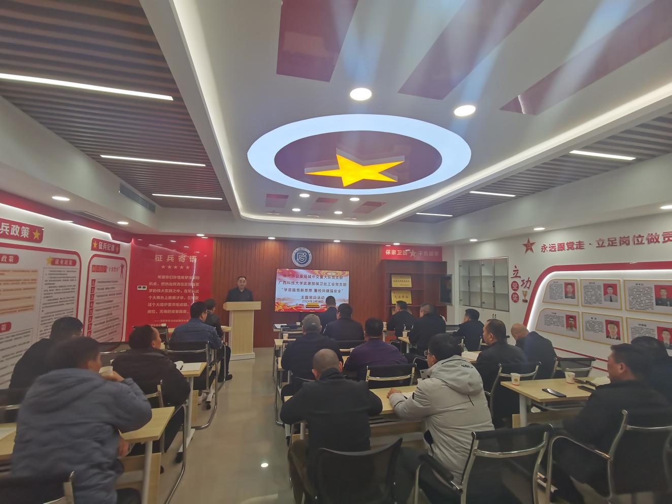 3月14日上午,武装部(保卫处)工会党支部与城中交警大队党支部联合联合开展了“学思践悟新思想 警校共建强安全”主题党日活动,共20多名党员参加活动。活动由武装部(保卫处)工会党支部书记周武汉主持。