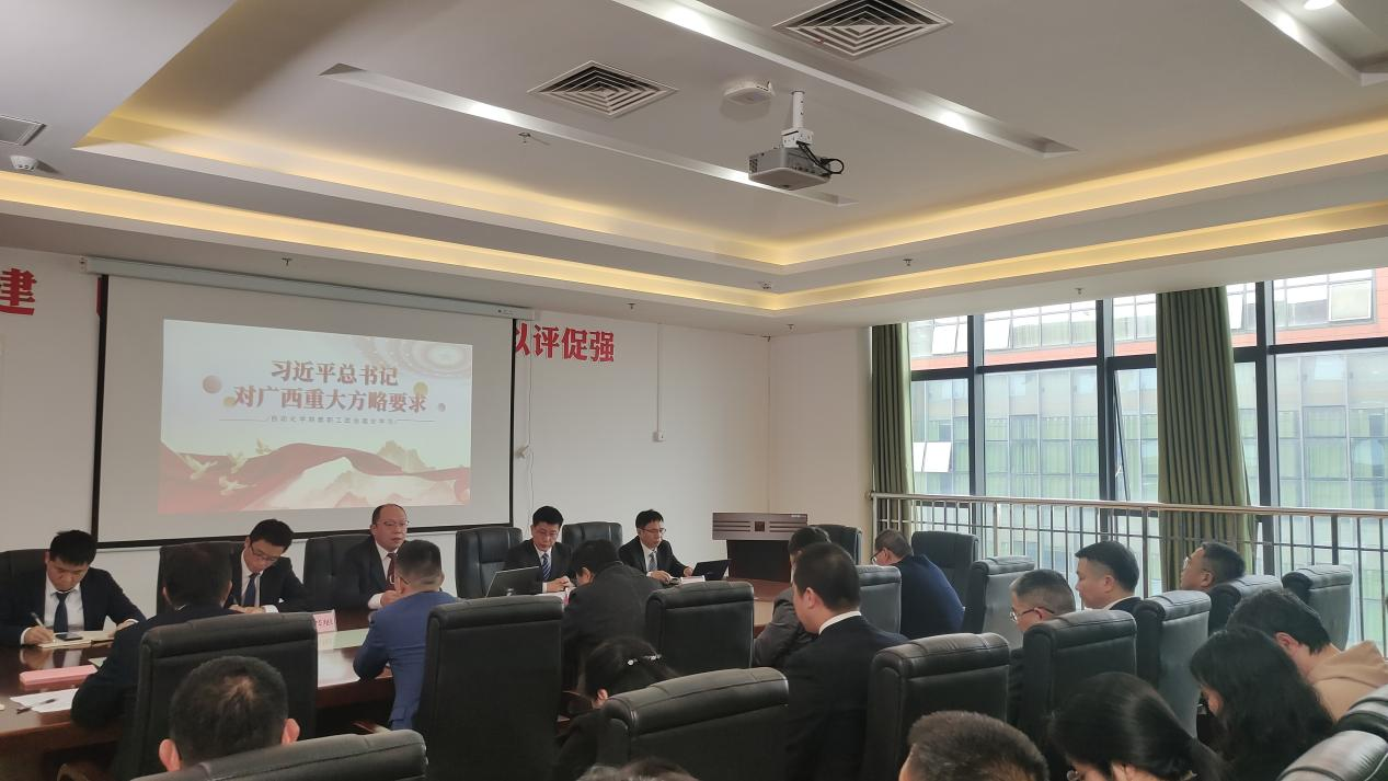3月12日下午,自动化学院在柳东校区L2-514会议室召开教职工政治理论学习会,学习习近平总书记对广西重大方略要求。学院全体教职工参加会议,会议由学院党委书记彭勇主持。