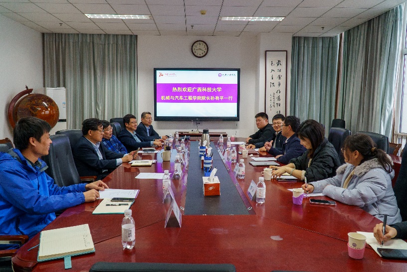 调研过程中,孙有平介绍了广西科技大学的发展历程和办学特点,以及机械汽车学院在人才培养、科学研究和围绕地方产业打造学科特色等方面的主要做法和取得的成绩。