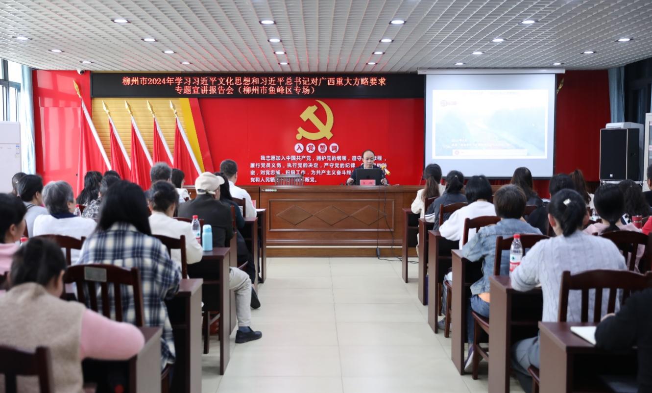 根据柳州市委宣传部统一安排,4月9日下午,柳州市委讲师团宣讲员、机械汽车学院党委副书记、纪委书记李辉教授在柳州市鱼峰区作学习习近平总书记对广西重大方略要求专题宣讲,来自鱼峰区各镇、街道党员干部群众代表近70人参加宣讲报告会。宣讲报告会由鱼峰区箭盘山街道党工委书记陈岗主持。
