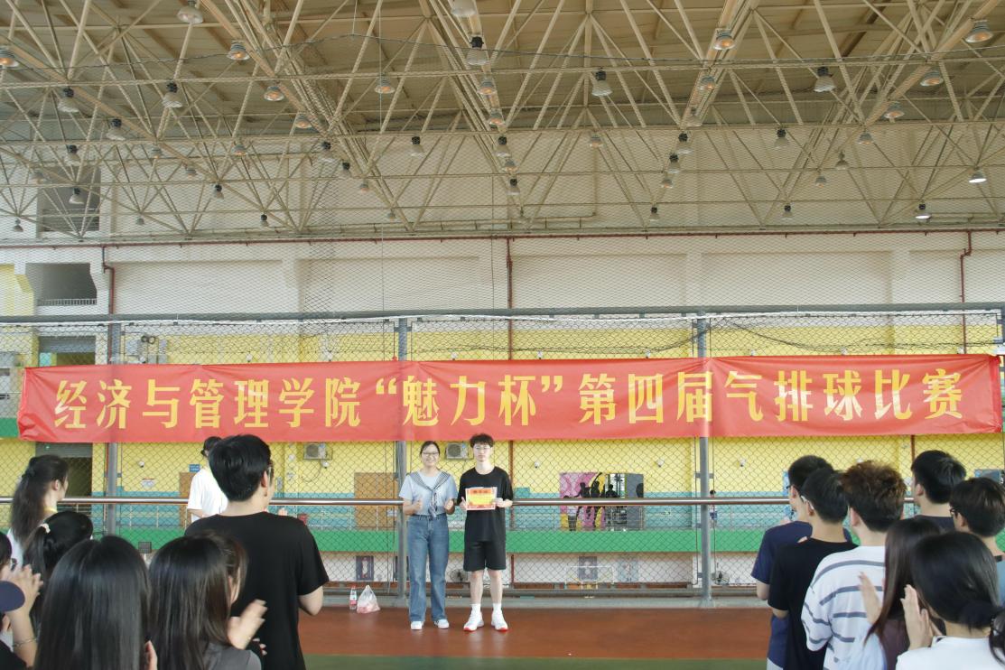 4月21日下午,经济与管理学院“魅力杯”第四届气排球比赛圆满结束。学院党委副书记、纪委书记韦齐齐,学工办主任、团委书记彭秋萍,学院23级辅导员李睿,学院体育团指导老师王豪杰出席闭幕式,并为获奖团队颁奖。