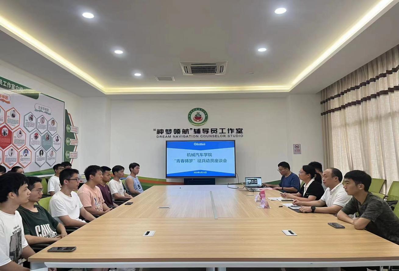 6月16日,机械汽车学院举行以“青春铸梦”为主题的征兵动员座谈会。学院党委书记何敏、就业专干刘文艺、有意了解征兵政策毕业生共20多人参加座谈会。会议由学院党委副书记、纪委书记李辉主持。