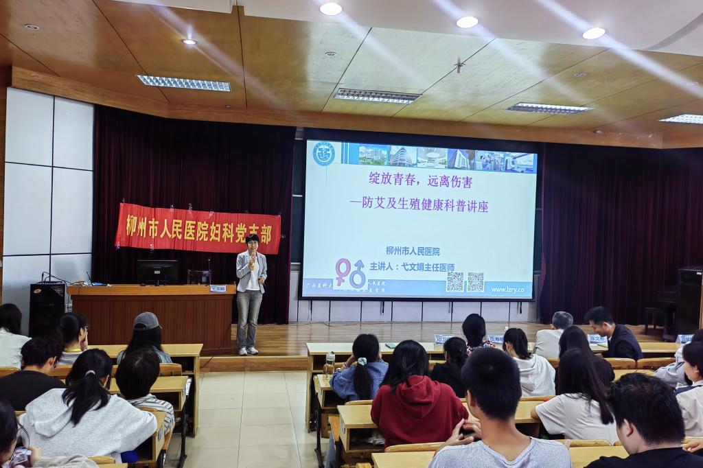 启动仪式结束后,柳州市人民医院妇科主任、主任医师弋文娟围绕艾滋病的定义、传播途径、预防措施,生殖健康常识以及避孕药具的种类、使用方法、注意事项等内容,为在场的师生作了题为《知性智行 呵护健康》专题讲座。