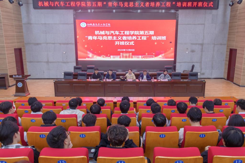 12月6日,机械与汽车工程学院第五期“青年马克思主义者培养工程”培训班开班仪式在柳东校区T1-303多功能报告厅举行。学院党委书记何敏,副院长杨年炯,辅导员古思敏、刘文艺、马凯越以及青马工程100多名学员参加开班仪式。何敏以《如何提升学生干部的执行力》为题作首场培训讲座。