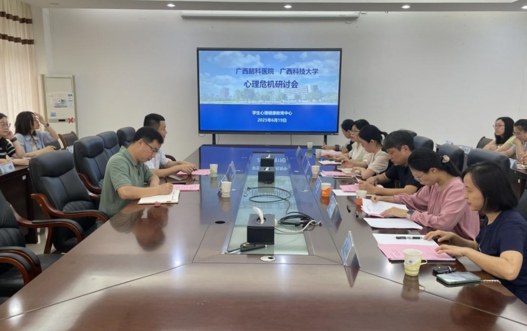 6月19日上午,学校学生心理健康教育中心与广西脑科医院在文昌校区办公楼4—1会议室联合开展的心理危机干预研讨会。学工部(处)副部(处)长、心理中心主任刘阿娜,人文艺术与设计学院党委副书记、纪委书记沙磊,广西脑科医院儿少心理科三病区主任杨盼,儿少心理健康服务指导中心副主任马阿军,学校卫生所医生,全体心理健康教育专职老师,各学院(部)负责心理工作的辅导员,阳光360心理健康工作室成员等20多人参加会议。会议由该中心副主任熊少青主持。
