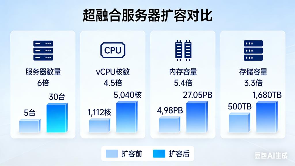 近日,学校网络中心积极拓宽资源渠道,加强校企合作,在基本不增加学校财力投入的情况下,将教学办公区互联网出口带宽扩容至8Gbps,同比2024年专线带宽实现4倍扩增,IPv4地址数量翻番。同时利用银校合作智慧校园项目完成数据中心核心基础设施的迭代、升级和扩容。新增 25 台超融合服务器,CPU虚核数量从1112个提升至5040个,达到原有数量的4.5倍;总内存从4.98TB 扩容至27.05TB,是原规模的5.4倍;存储从500TB 扩展到1.64PB,扩增至原容量的3.3倍。数据中心灾备系统从100T扩容至400T;校园云盘存储容量从50T升级到210T;完成校园网核心出口引擎、核心交换机等关键网络设备的更新,为智慧校园高质量运行提供了坚实的网络和硬件条件支撑。
