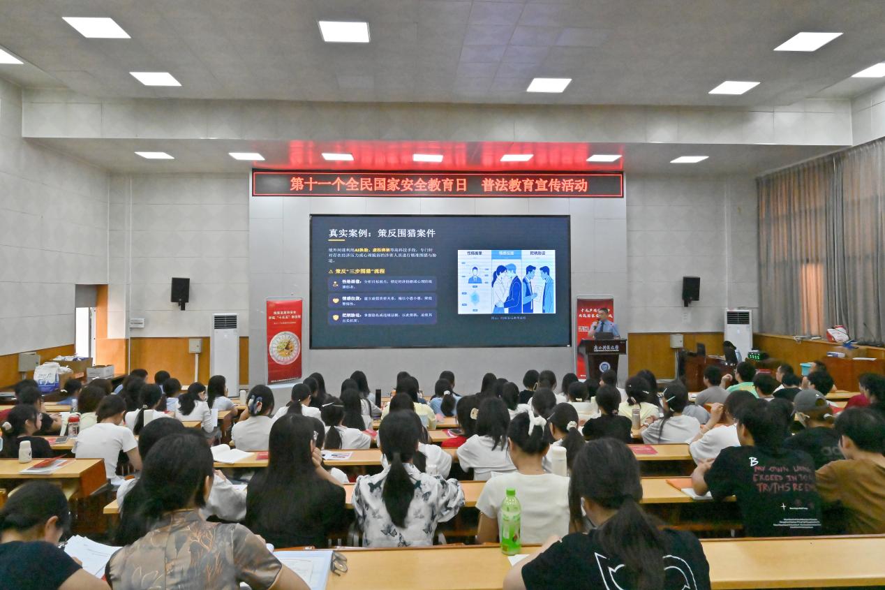 活动中,柳州市检察院陈宇检察官以电影《惊蛰无声》为切入点,结合真实案例与检察工作实践,围绕总体国家安全观、政治安全、网络安全、意识形态安全、反间谍防范、校园安全风险等内容为师生带来一堂生动的法治课。活动还通过发放宣传资料、播放视频资料等形式,全方位普及国家安全法律法规及日常防范技巧,推动国家安全意识入脑入心。