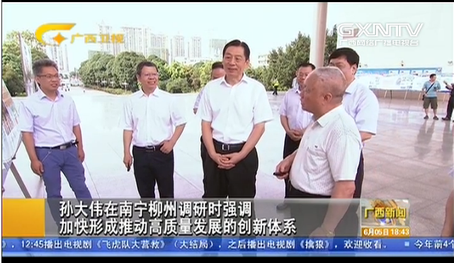 6月4-5日,自治区党委副书记孙大伟就科技工作推进情况,深入南宁和柳州的高校和企业进行调研,6月4日下午,孙大伟一行到我校考察指导工作。6月5日,广西电视台以“孙大伟在南宁柳州调研时强调 加快形成推动高质量发展的创新体系”为题对此进行了报道。