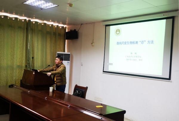 1月8日下午,广西医科大学药学院的博士生导师杨帆教授应邀到我校作题为《微纳尺度生物检测“芯”方法》的学术报告。报告会在东环校区科教中心大楼西701会议室举行,生化学院副院长黄文艺主持报告会,相关教师和研究生共同聆听了报告。
