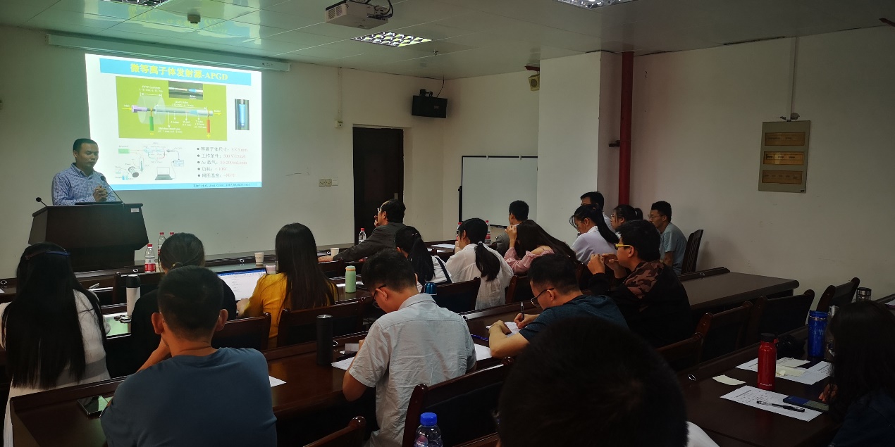 朱振利研究员首先对基于等离子体技术的元素、同位素分析方法与特色仪器进行了简单介绍。据悉,朱振利研究员团队的研究主要围绕低功耗微等离子的研发,分别对微等离子体的定义、微等离子体的发射源进行了详细的介绍,报告主要围绕APGD微等离子激发源的低功耗、低消耗、气流调控以及等离子体蒸汽的发生方法等内容进行。他还对同学们讲解了其在一次失误中发现了通过气控增敏的方式对辉光放电等离子体源的增敏方法,鼓励同学们在研究的过程中要善于观察、总结,不要放过任何实验结果。