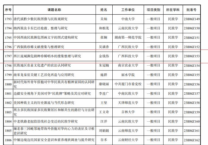 2023年度教育部人文社会科学研究西部和边疆地区项目立项一览表