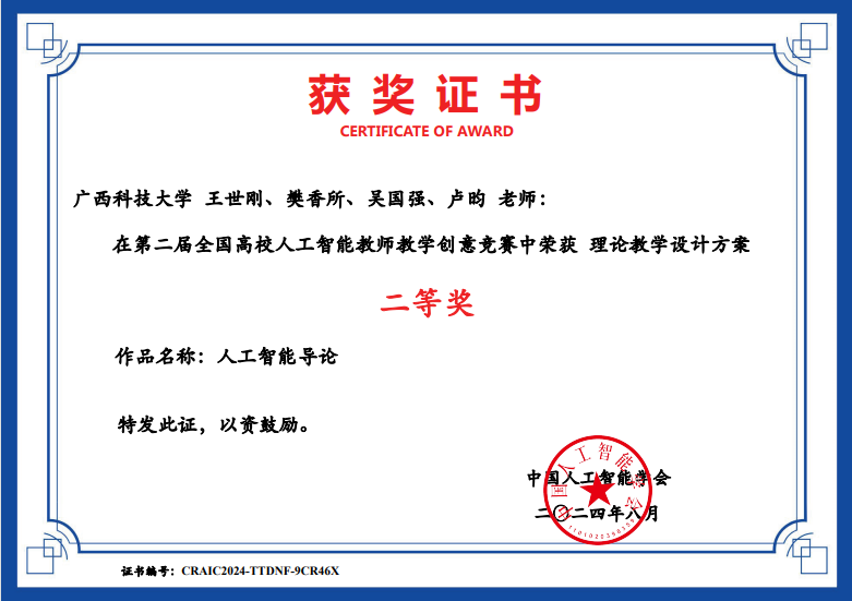 8月18日,2024年第二届全国高校人工智能教师教学创意竞赛全国总决赛落幕。自动化学院王世刚团队荣获理论教学设计方案全国二等奖。