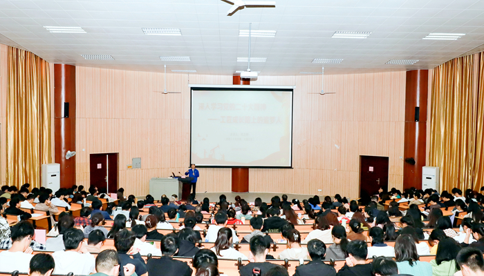 为全面贯彻落实党的二十大精神,5月12日上午,受医学部邀请,党的二十大代表、广西汽车集团有限公司首席技能专家、国家级技能大师工作室负责人、2022年“大国工匠年度人物”、广西科技大学优秀校友郑志明高级工程师到校作专题辅导报告。报告会由医学部党委常务副书记廖奕主持。医学部全体处级领导、党支部委员、学部机关和三系一部师生党员代表、学生代表300余人参加报告会。