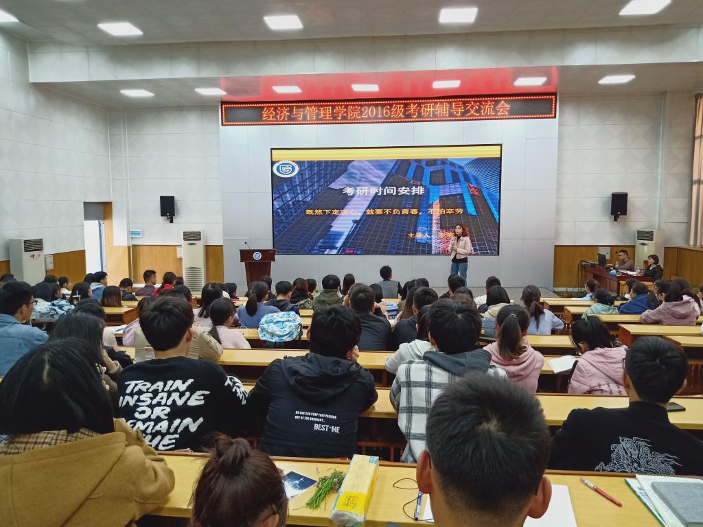 经济与管理学院学生基数大,考研人数多,考研升学一直是学院的重要工作。目前针对2016级同学的考研意向统计是273人,接下来还会针对性开展动员工作。学院也在积极探索如何有效地提高同学们的考研积极性,提高学习的效果。通过辅导交流会,学院充分掌握考研学生动态,为后期跟进辅导打下良好基础。参加交流会的同学表示,通过交流对考研有了更深刻的了解,对考研有了初步计划,坚定了自己考研的信念。