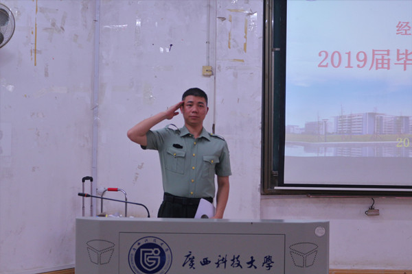 动员会还组织了退伍复员学生做部队的成长经历和优秀事迹宣讲。来自国际经济与贸易171班的李允彧同学(女)和国际商务161班的韦嘉麒同学分享了部队的成长经历与收获。他们认为,服兵役时期不仅锻炼了自己的心智,还收获了真挚的战友情,部队的经历收获,必将助力今后的职场生涯。不管是现役还是退役军人,都会一直铭记“为了国家和人民贡献一切”。