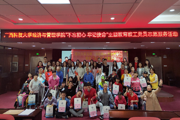 2019年11月15日,学院党委副书记、院长卢志平,学院党委副书记陈学智、副院长朱晓琴带领学院教工党员,来到柳州市社会福利院,开展“不忘初心、牢记使命”主题教育志愿服务活动。