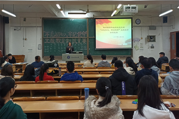 11月4日晚上,物流国商专业学生党支部在第四教学楼4C103教室举行“不忘初心、牢记使命”主题教育知识竞赛,支部全体党员和入党积极分子参加了本次知识竞赛,支部书记翁文雯老师担任评委。