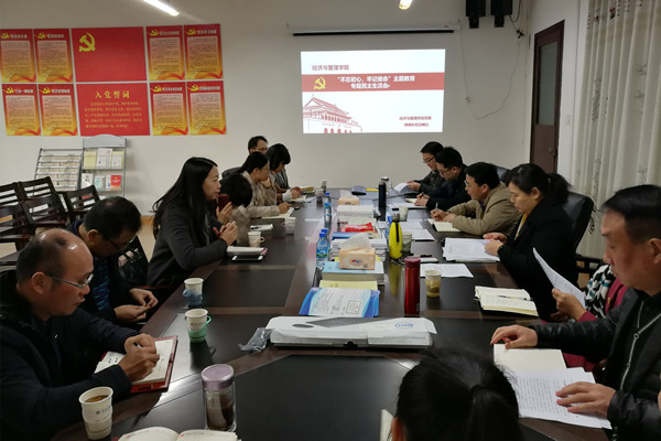 根据校党委《关于开好我校处级党员领导干部“不忘初心、牢记使命”主题教育专题民主生活会的通知》(科大党发〔2019〕86号)的文件精神与要求,2019年12月9日上午,经济与管理学院党委在学院4B409会议室召开2019年度学院处级党员领导干部专题民主生活会,校党委副书记、纪委书记张正义同志参加会议并作指导,学院领导班子成员、教职工党员代表、学生党员代表参加了会议。会议由学院党委书记廖奕主持。
