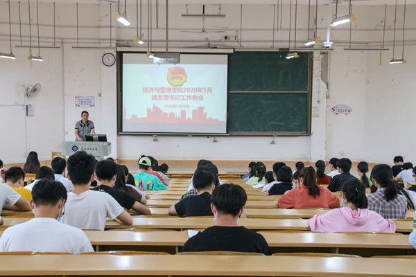 2020年5月26日下午,经济与管理学院团委在第四教学楼四阶五教室,召开2020年5月团支部书记工作例会,会议由学院团委书记翁文雯主持,学院全体团支部书记、副书记参加了本次培训。
