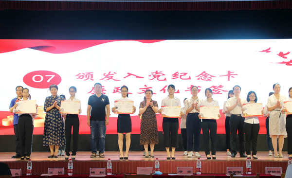 学院党委委员、专职组织员还为新党员颁发入党纪念卡和廉政文化书签。党员徽章戴在胸前,誓言记心中,庄重的宣誓仪式,激励党员们牢记初心使命,永葆先进本色,争做新时代的合格党员。纪念大会在嘹亮的国际歌中圆满结束。