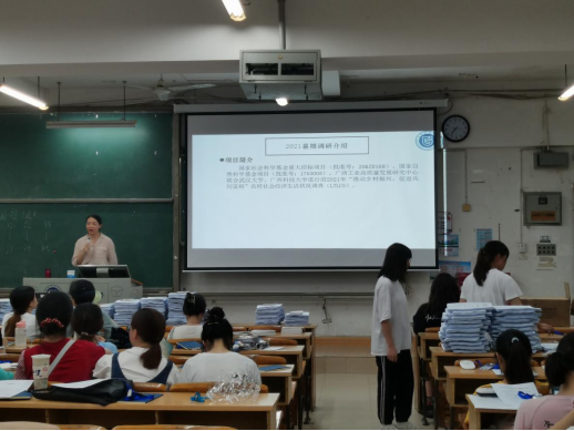 赖玥对参加此次动员大会的师生表示欢迎并介绍本次暑期调研的项目情况。本次调研是国家社会科学基金重大招标项目(批准号:20&ZD168)、国家自然科学基金项目(批准号:1763005)联合广西工业高质量发展研究中心共同发起,并依托自治区一流本科专业建设点--经济学专业进行的。调研员主要由经济学2018、2019和2020级本科生以及其他专业学生、研究生构成。