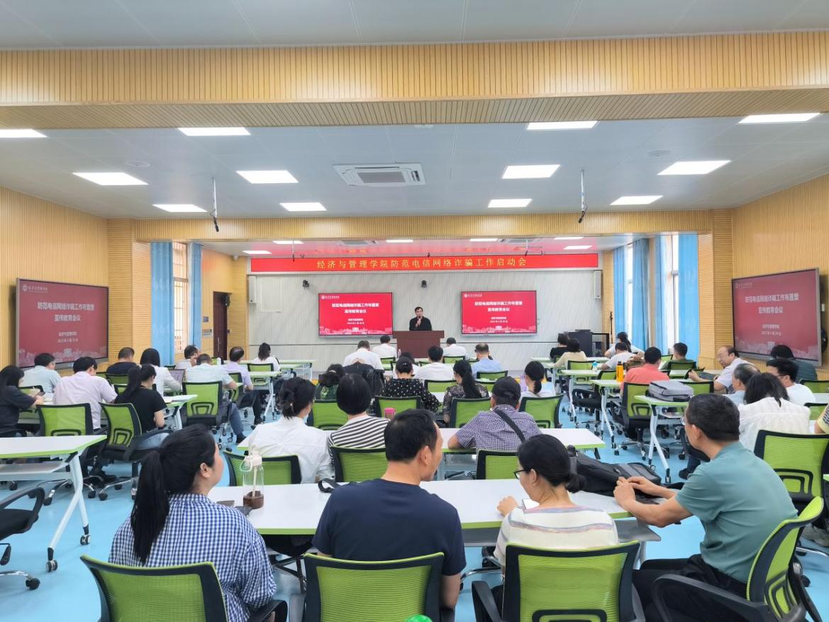 为统筹推进学院常态化反诈工作,不断增强学院师生电信网络诈骗的防范意识和能力,4月29日下午,经济与管理学院在文昌校区第四教学楼4D403教室召开防范电信网络诈骗工作启动会。学院全体教职工参加会议。会议由学院党委书记莫勤德主持。