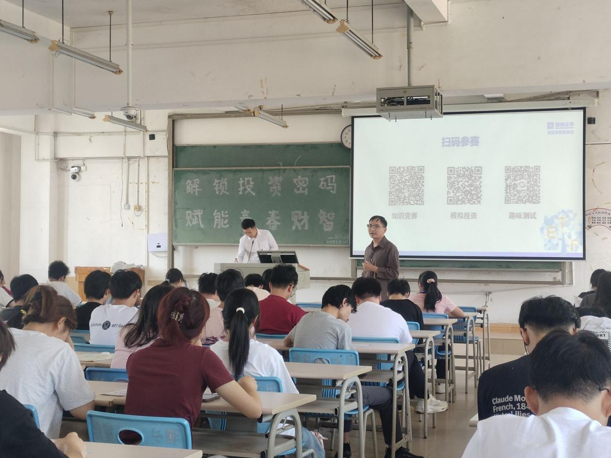 5月13日下午,经济与管理学院在文昌校区第四教学楼4C501教室举办“解锁ETF投资密码,赋能青春财智”金融知识讲座。国海证券投资者教育讲师李名明担任主讲,学院团委副书记廖万忠主持,学院100多名学生参加。