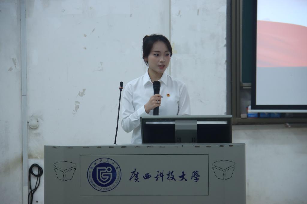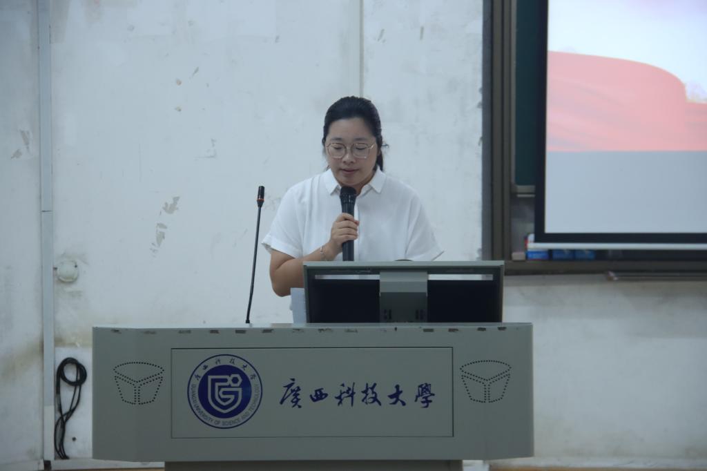 大会在庄严的国歌声中拉开帷幕。学院学工办主任、团委书记彭秋萍代表学院团委致辞。