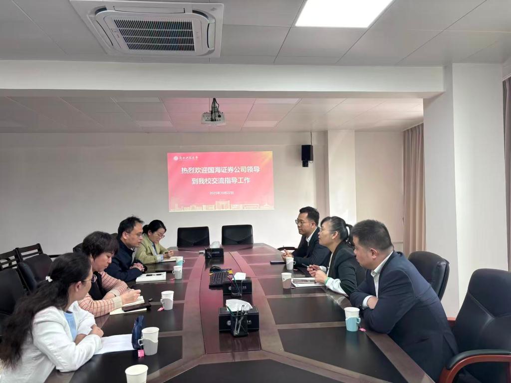 10月22日下午,国海证券股份有限公司柳州北站路证券营业部蒋红球一行3人到经济与管理学院,双方聚焦教育基地建设、实践培养、学生实习就业和开展投教知识竞赛等话题展开深入探讨,就证券期货投资者教育进校园合作协议落地达成了初步共识。
