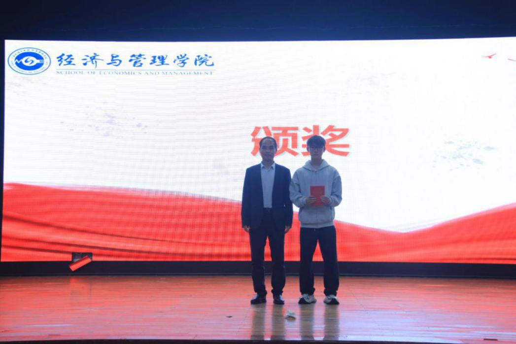 学校心理中心副主任肖琳、学院团委书记、学工办主任许璐老师为二等奖颁奖