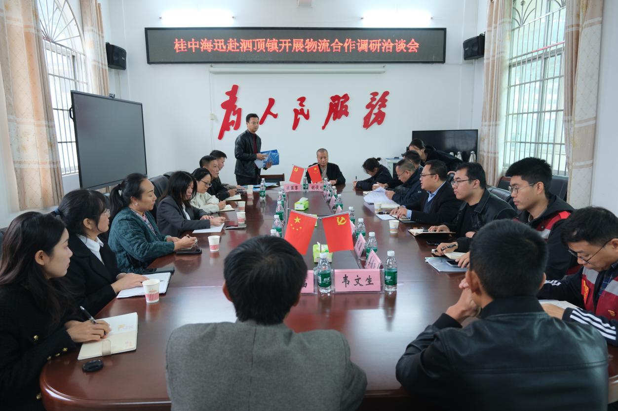11月11日,经济与管理学院副院长梁斐雯、桂中海迅物流股份有限公司副总经理伍俊芳一行8人前往融安县泗顶镇围绕物流合作开展专题调研并举行洽谈会。泗顶镇镇长黄诗保及相关工作人员出席会议。