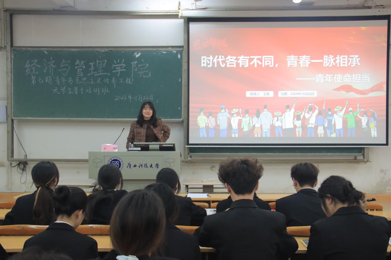 11月22日上午,经济与管理学院在文昌校区第四教学楼4C201教室举办第七期“青马工程”大学生骨干培训班。学院团委副书记王萌以“时代各有不同,青春一脉相承——青年使命担当”为主题,向本期青马班学员进行授课。