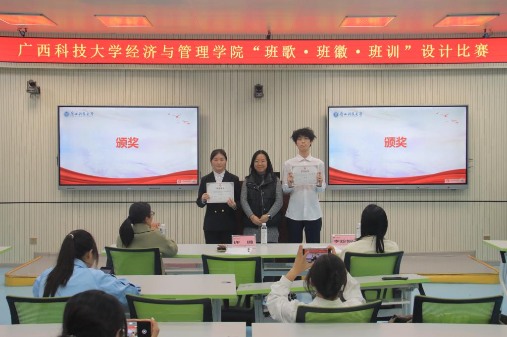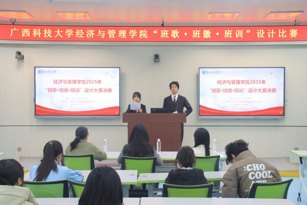 11月19日,经济与管理学院“班歌·班徽·班训”设计比赛在第四教学楼4D403隆重举行。学院团委书记、学工办主任、2025级辅导员许璐,2025级辅导员陆道芬和2024级辅导员李珍妮担任比赛评委。