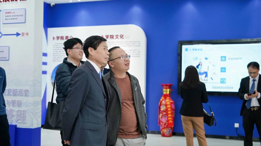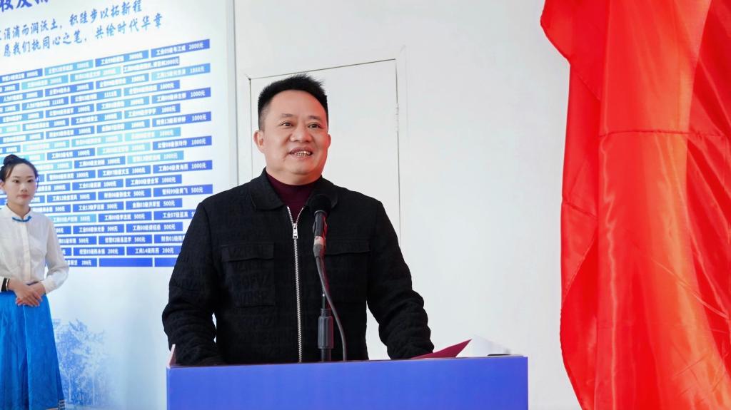 学院党委书记庞晓红在致辞中深情回顾了学院四十年来砥砺前行、不断发展壮大的奋斗历程。他强调,院史展厅从蓝图变为现实,凝聚了全院师生的智慧与汗水,更离不开广大校友的鼎力支持。据统计,共有110余名教职工累计捐款7万余元,160余名校友捐赠了20余万元现金及价值15万元的实物。庞晓红代表学院向所有奉献者致以崇高敬意,并表示展厅将成为传承“经世济用、崇管尚理”院训精神、筑牢思政教育根基的核心阵地。